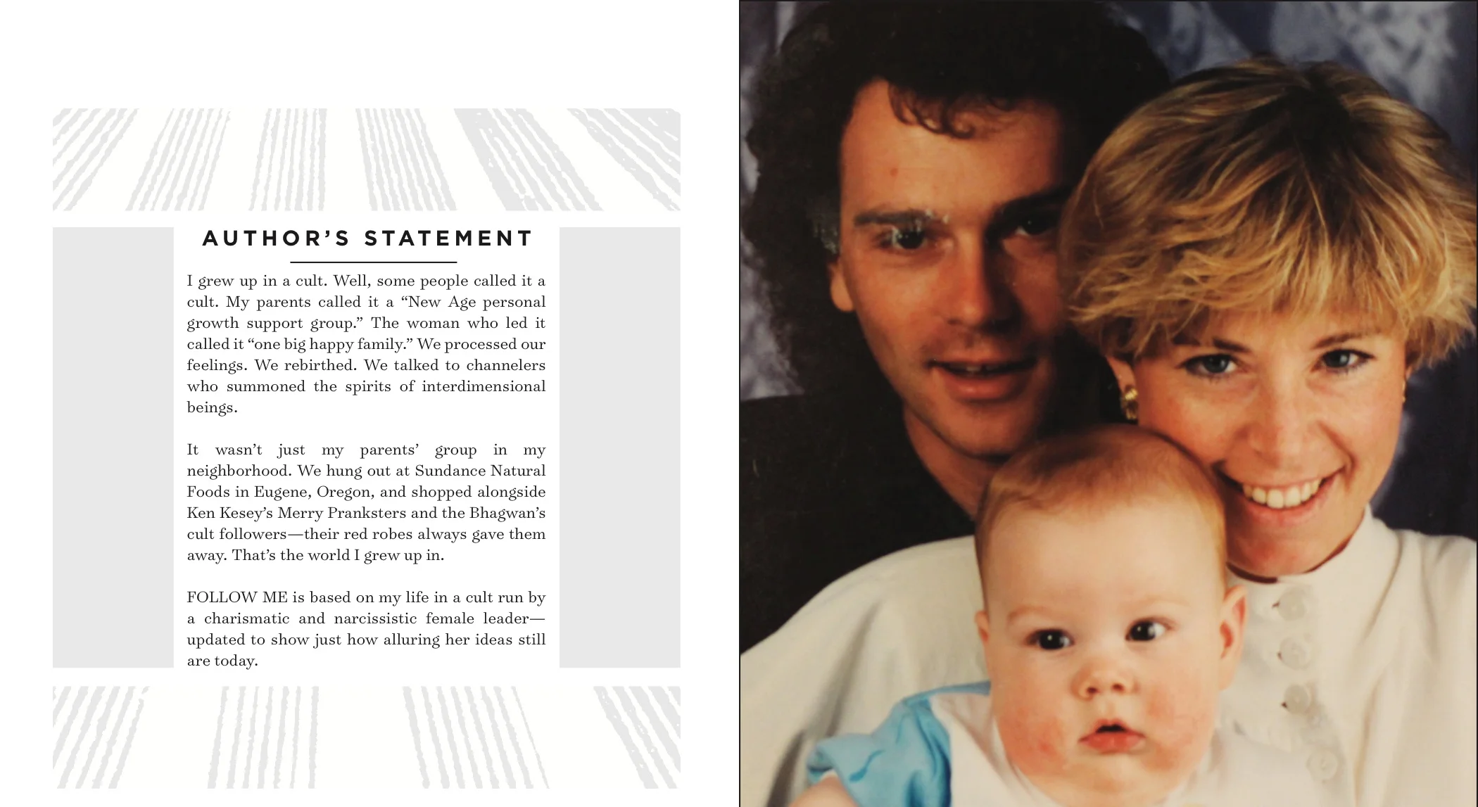 FOLLOW ME is based on my life in a cult run by a charismatic and narcissistic female leader—updated to show just how alluring her ideas still are today.